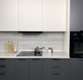 Качественные торцевые алюминиевые ручки изящно дополняют и подчеркивают лаконичный стиль этого кухонного гарнитура.